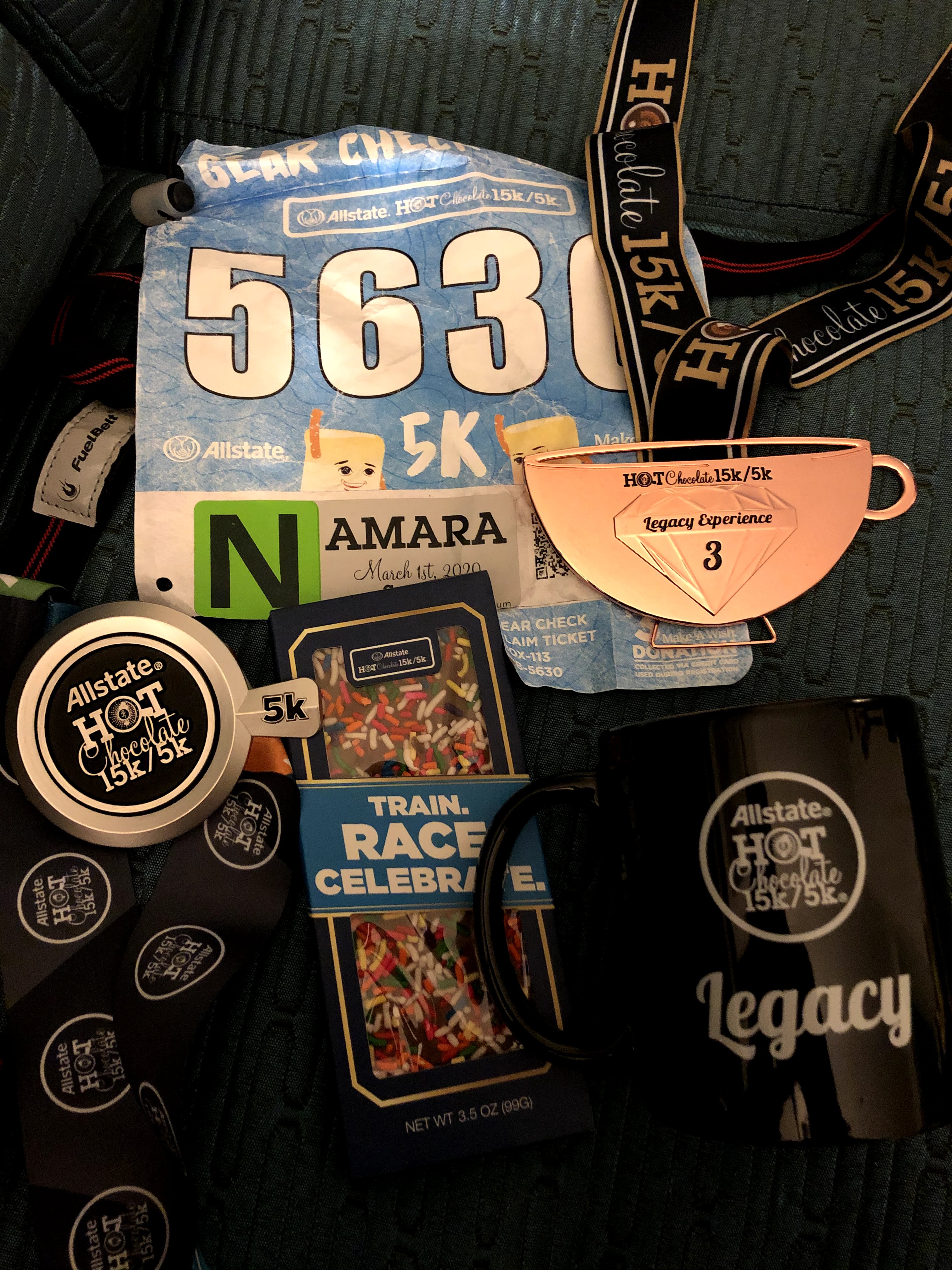 The Hot Chocolate race series by far is one of my favorite. Their expo, races, and finish line festivals are always so well planned. My goal was to achieve legacy status, which is given to you when you race in 3 consecutive years. They gave me an amazing swag pack, filled with gourmet chocolate, hot cocoa packs, a special medal, and a mug. The mug is definitely my favorite because it means that I can show it off during work meetings 🙂