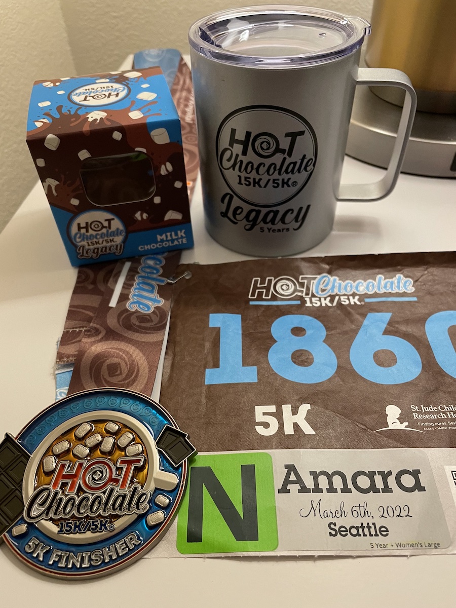 I love spending my birthday week/weekend in Seattle. I was able to double up with a work trip to also visit my coworkers and friends. I was also able to squeeze in the Hot Chocolate 5K, which meant I was able to hit my 5 year legacy status.