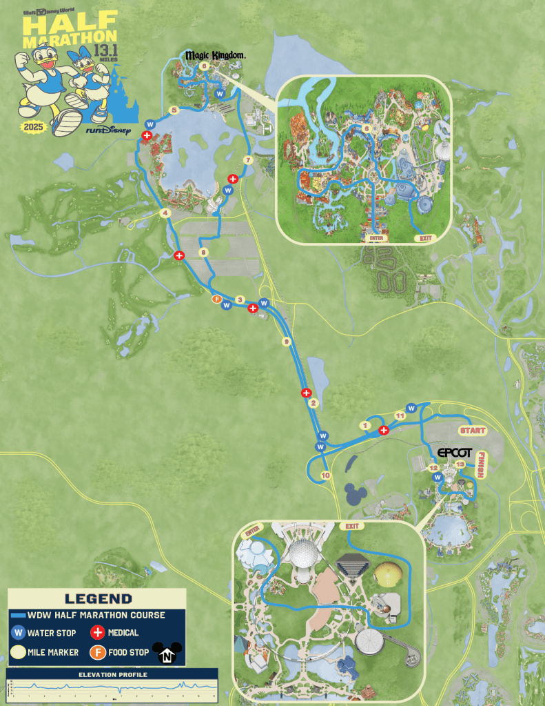 The Disney World Marathon hits all 4 parks, as well as one of the water parks (or at least the parking lot). I spend a lot of time at Disney World, so I pretty much recognized every place in every park we ran through. I was seeded in corral D, which gave me an extra hour to finish the marathon. I definitely needed it.
